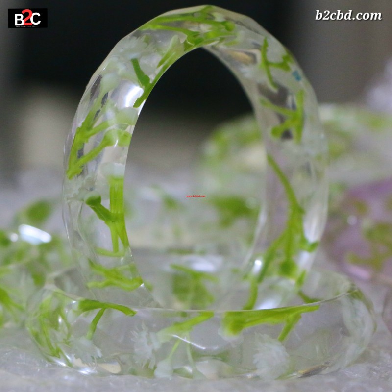স্বচ্ছ রেজিনের মধ্যে প্রাকৃতিক ফুল, উজ্জ্বল রঙ, অথবা ঝিকিমিকি গ্লিটার ব্যবহার করে প্রতিটি চুড়িকে বানানো হয়েছে একেবারে ইউনিক ও হালকা-ওজনের। এই চুড়িগুলো খুবই মডার্ন, ট্রেন্ডি এবং ক্যাজুয়াল বা ট্র্যাডিশনাল দুই ধরনের পোশাকের সাথেই মানিয়ে যায়।